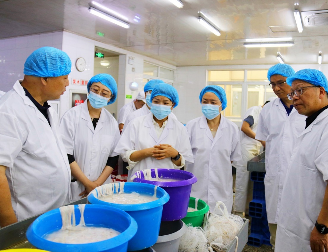5月24日,省國貿集團外部董事謝平、陳國榮、陳小茜、單人、季建陽,專職監事朱晟一行到浙江土畜凱興工廠調研腸衣生產情況。公司黨委副書記、總經理林軍,專職外部董事宋耀華,執行總裁蘇義鳳,辦公室、土畜凱興相關負責人參加。
