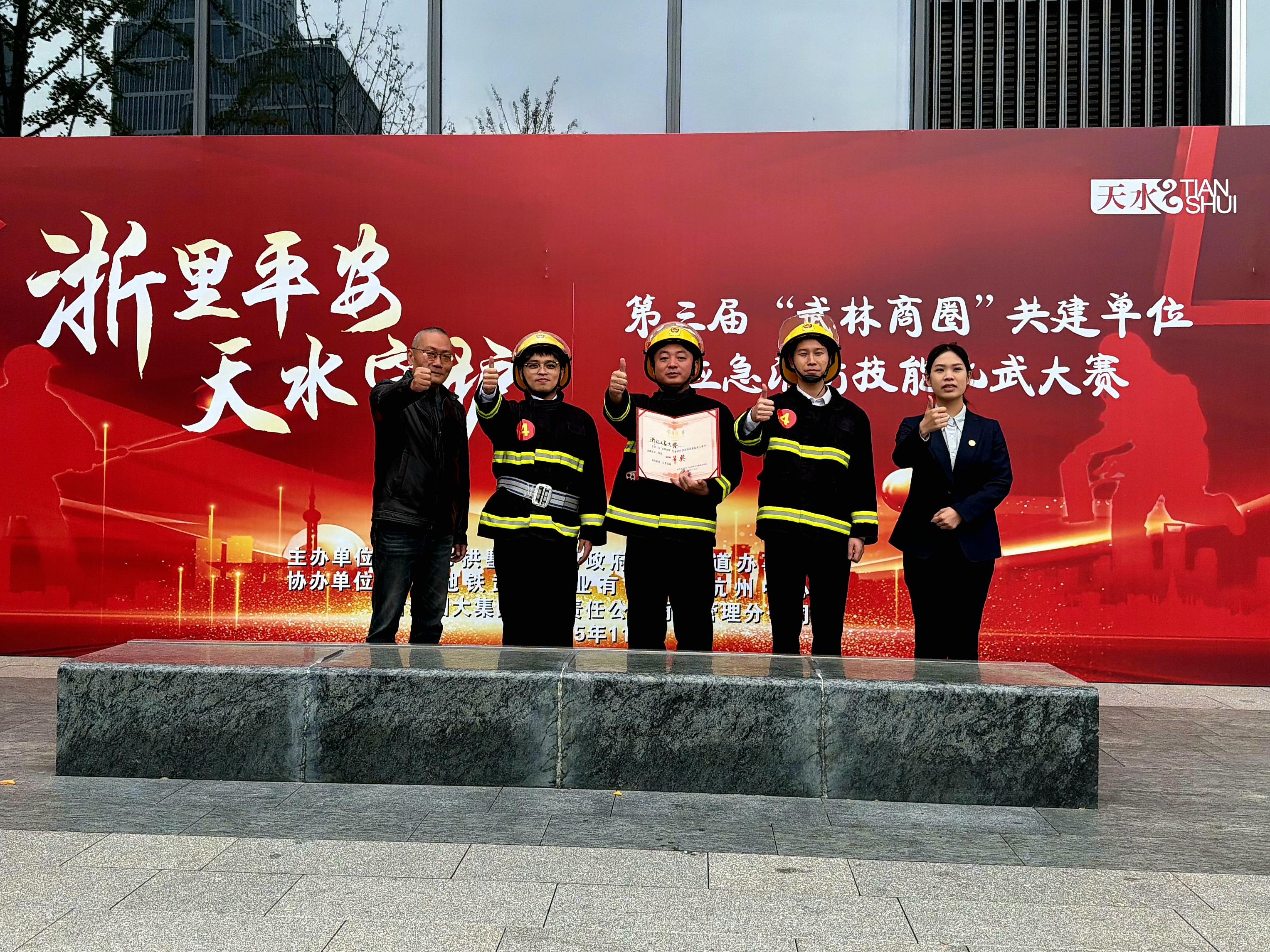 公司大樓微型消防站積極參加第三屆“武林商圈”共建單位應急消防技能比武大賽,參賽隊員憑借扎實的消防業務知識、熟練的應急處置技能和默契的團隊協作,最終榮獲一等獎。此次比武展現了公司微型消防站與街道應急消防站長期聯勤聯訓的良好效果,體現了公司微型消防站隊伍的過硬素質,為公司大樓消防安全筑牢了堅實的屏障。