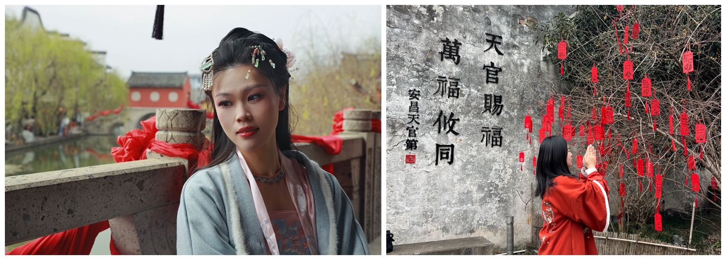安昌古鎮素有“碧水貫街千萬居,彩虹跨河十七橋”之美譽。大家或穿漢服、或著國風服飾,倚橋遠眺,執扇輕笑,徜徉于古街之上,看古橋、古纖道,感受典型的江南水鄉風光。