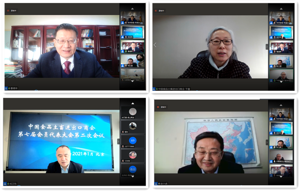 根據(jù)中國(guó)食品土畜進(jìn)出口商會(huì)章程規(guī)定和工作安排,考慮到當(dāng)前新冠疫情防控總體要求,2021年1月26日,食土商會(huì)以線上視頻會(huì)議方式召開了第七屆會(huì)員代表大會(huì)第二次會(huì)議。本次會(huì)議應(yīng)到會(huì)員代表265名,實(shí)到代表189名,超過應(yīng)到代表的三分之二,符合商會(huì)章程規(guī)定人數(shù)。