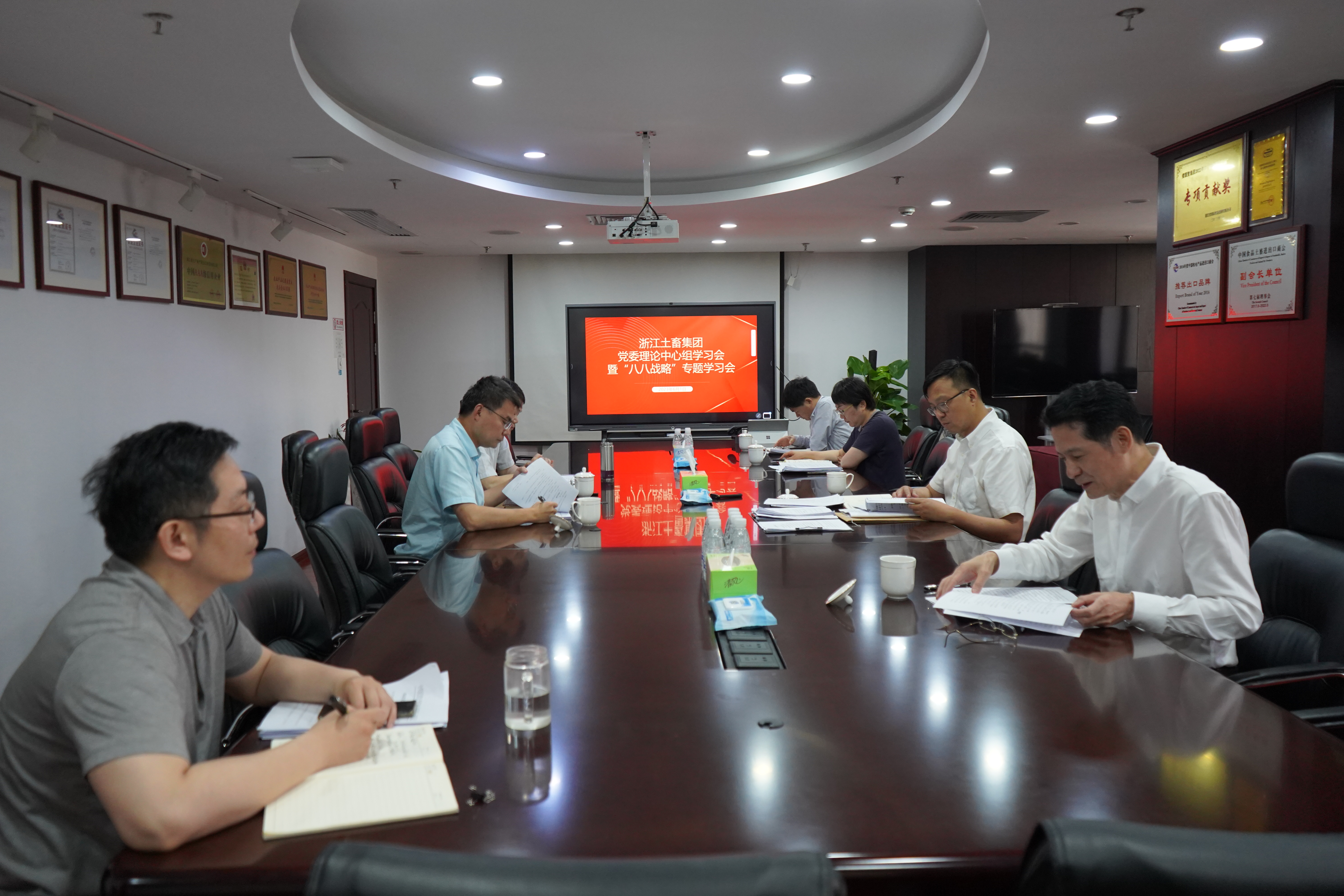6月1日,浙江土畜黨委理論學(xué)習(xí)中心組召開主題教育“八八戰(zhàn)略”專題學(xué)習(xí)會(huì),深入學(xué)習(xí)領(lǐng)會(huì)“八八戰(zhàn)略”、“千萬工程”經(jīng)驗(yàn)和“浦江經(jīng)驗(yàn)”、“樹立和踐行正確政績(jī)觀”以及習(xí)近平總書記在浙江工作期間對(duì)國資國企的重要論述。公司黨委理論學(xué)習(xí)中心組成員參加會(huì)議,黨委書記、董事長(zhǎng)張斌主持會(huì)議。