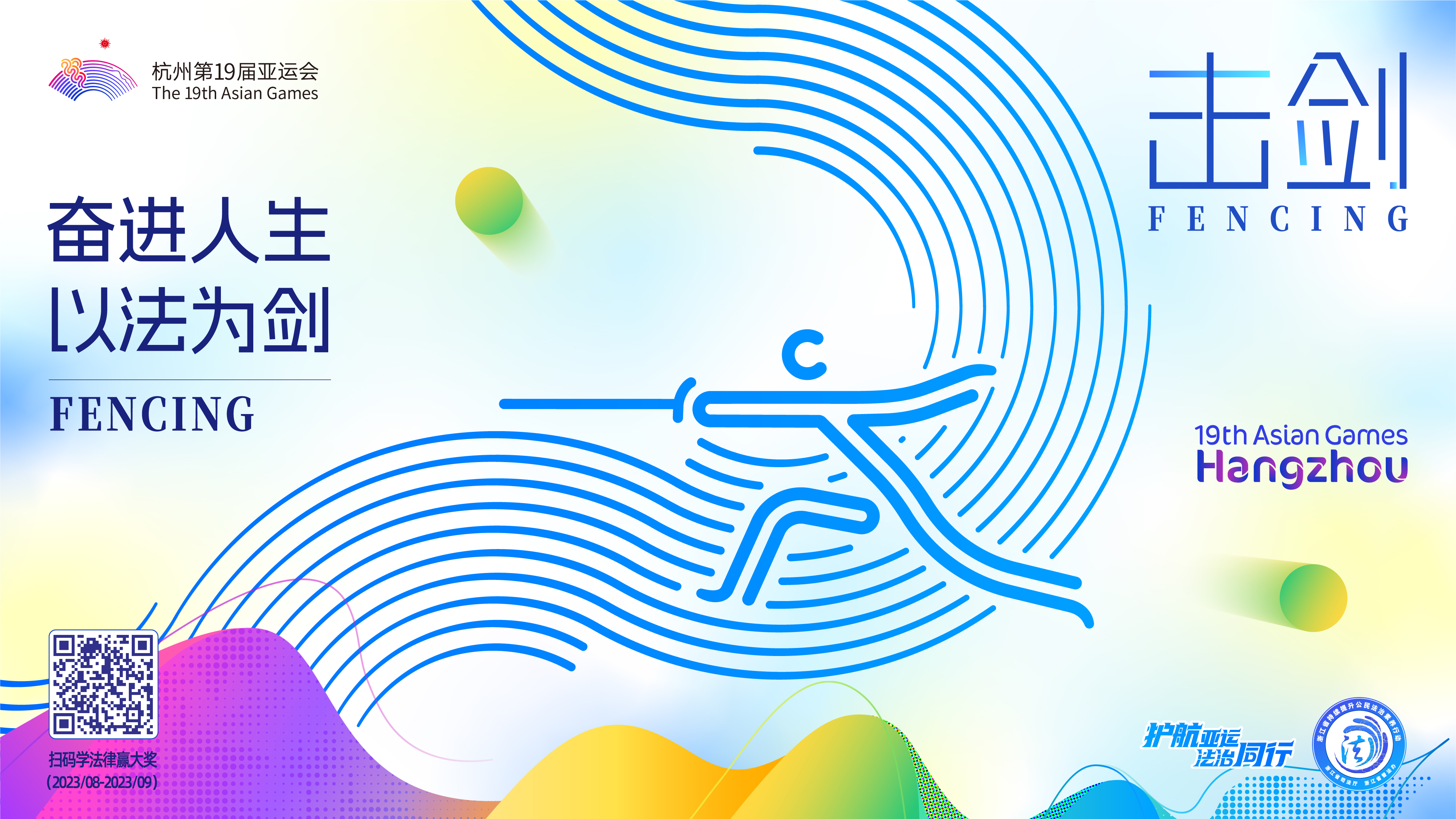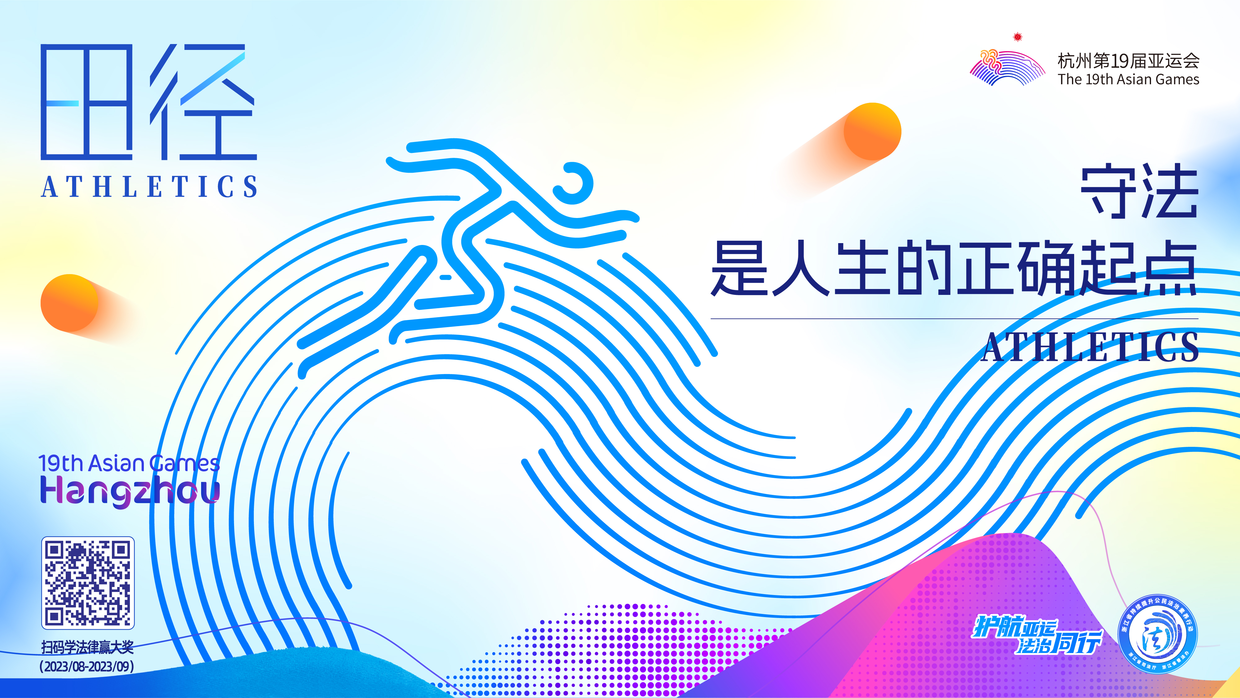 杭州第19屆亞運會即將到來,為營造更加濃厚的法治氛圍,由杭州亞組委指導(dǎo),浙江省司法廳、省普法辦原創(chuàng)的“護航亞運 法治同行”主題海報(一套共9張,含1張主視覺和8張配套海報)正式發(fā)布,這是2023年全省持續(xù)提升公民法治素養(yǎng)行動的特色活動之一。